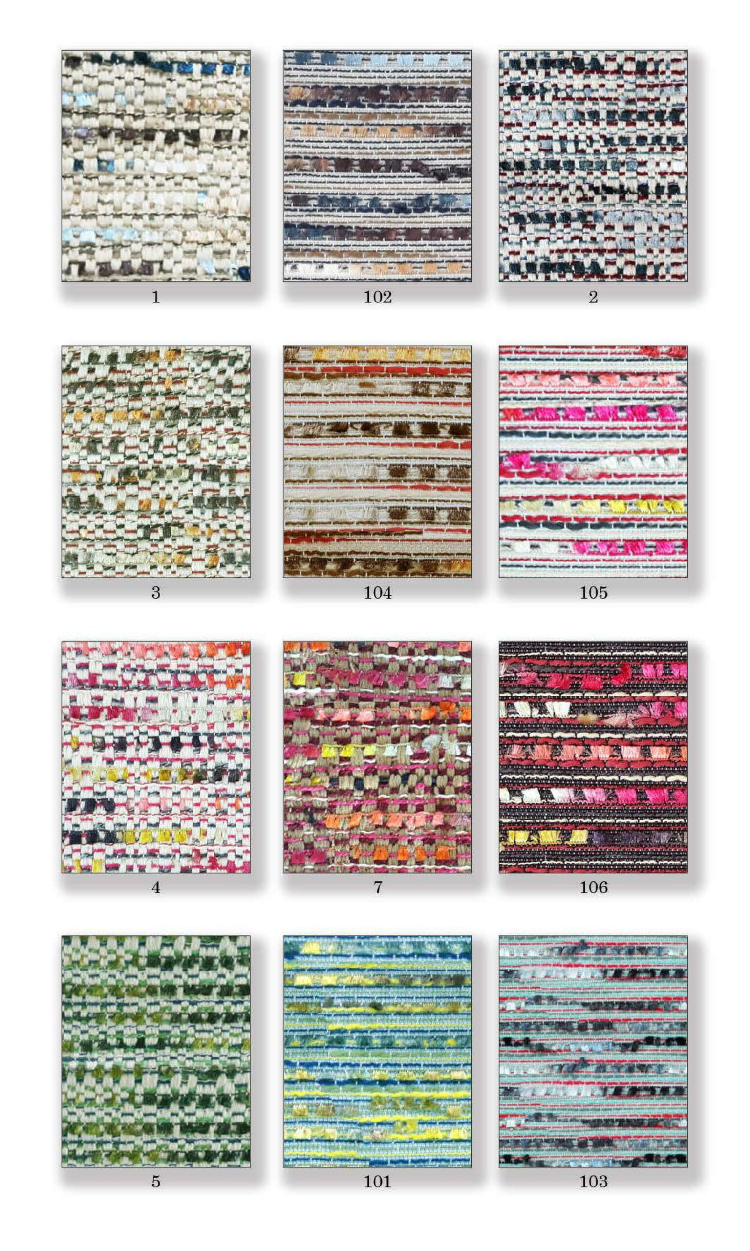 בדי סיבים טבעיים כוללים צמר, כותנה, משי, פשתן ויוטה.